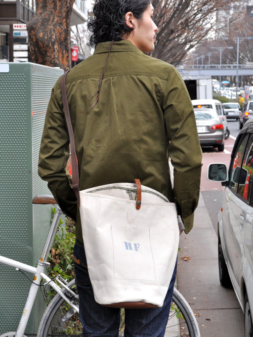 今回はアンティークのレザーを使いキャンバス地のショルダーを作ってきました。