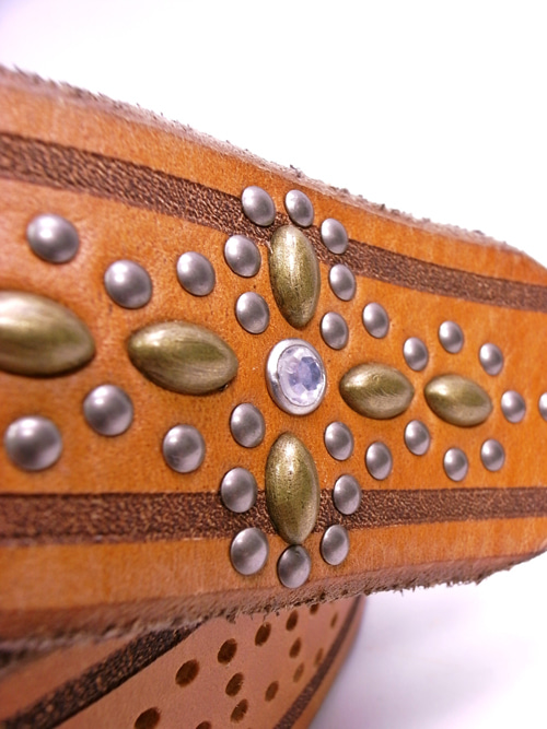 クリアースタッズとシルバーそしてブラスのスタッズと使ったベルトです。