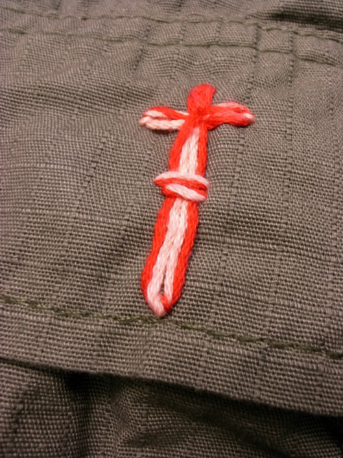 そしてポケットにはハンドステッチでクロスを入れました。
