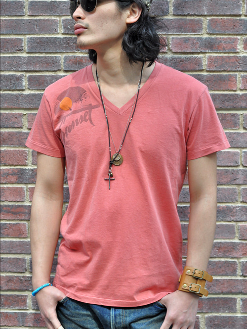 ヴィンテージ加工されたVネック