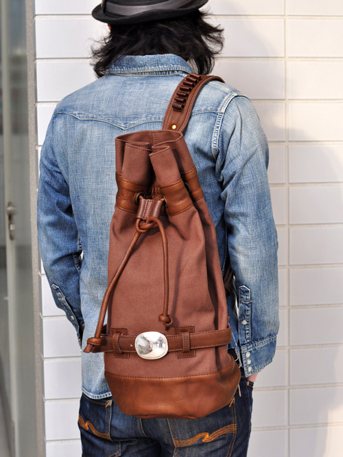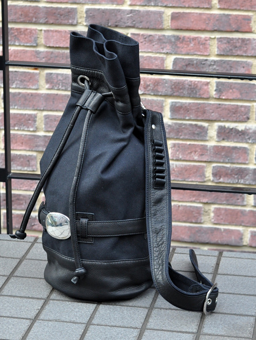 レザーとキャンバスのコンビのショルダーバッグ