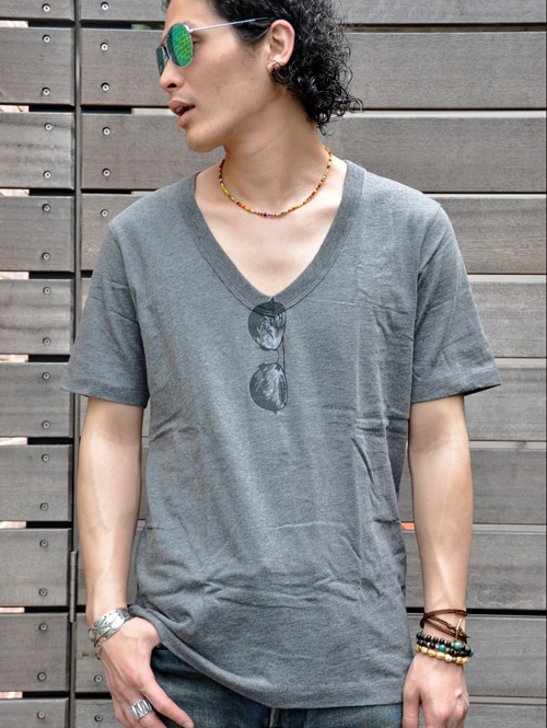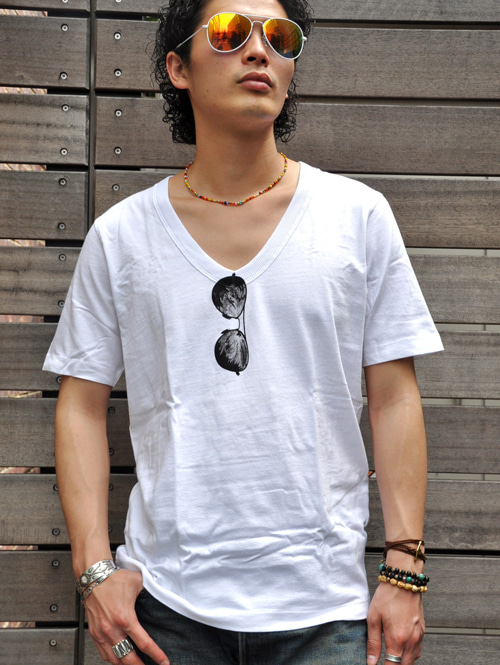 サングラス付きのVネックTシャツ