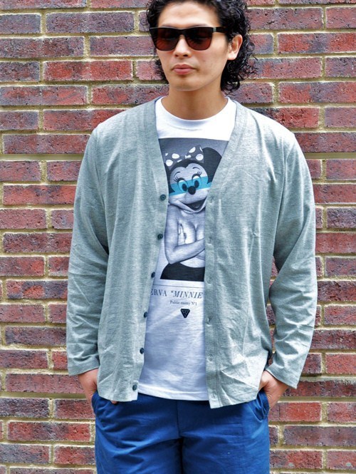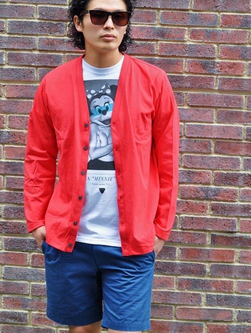 オリジナルでTシャツ素材より少し厚手のカーディガンが入荷です。