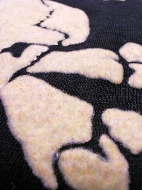 今は日本では禁止されてしまった吹き付けによるフロッキープリントがヴィンテージです。
