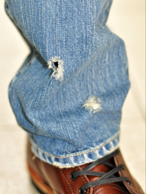 生地も右綾のデニムを使っているのでリーバイXXの様な色落ちをしています。
