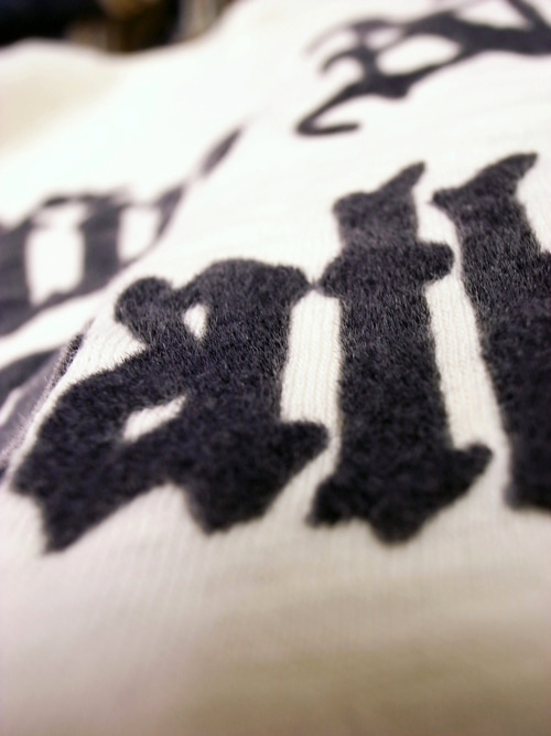 文字の部分が全てフロッキープリントなので凹凸感があります。