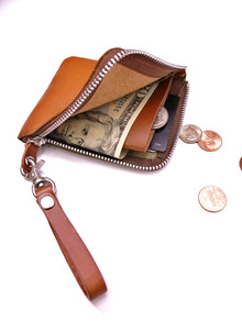 トップだけ開くと小銭が出て、全開にするとお札も取れる仕組みです。