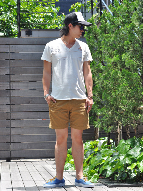 生地は結構堅めに織られた物を使い、それをヴィンテージ加工しているのでシャキッとした感じです。