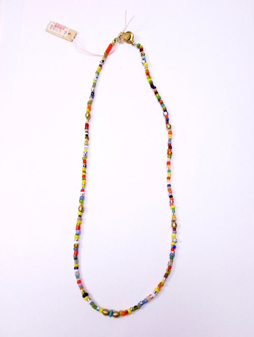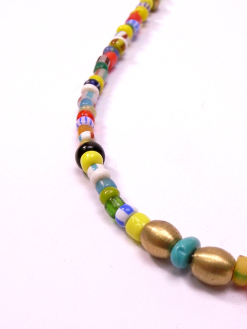 カラフルなアフリカンビーズにターコイズとブラスのビーズをプラスしました。