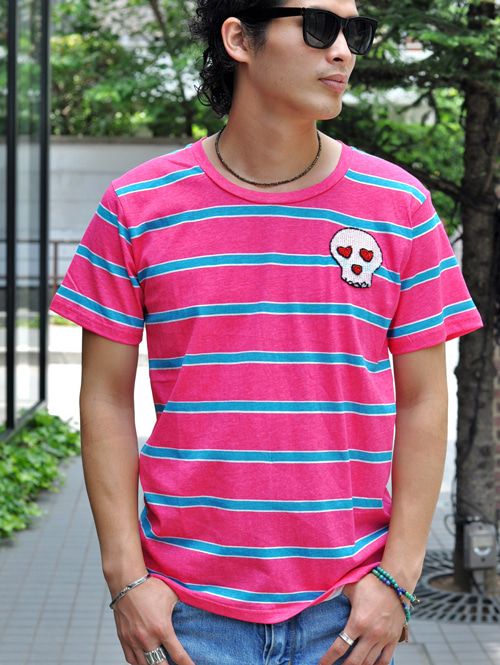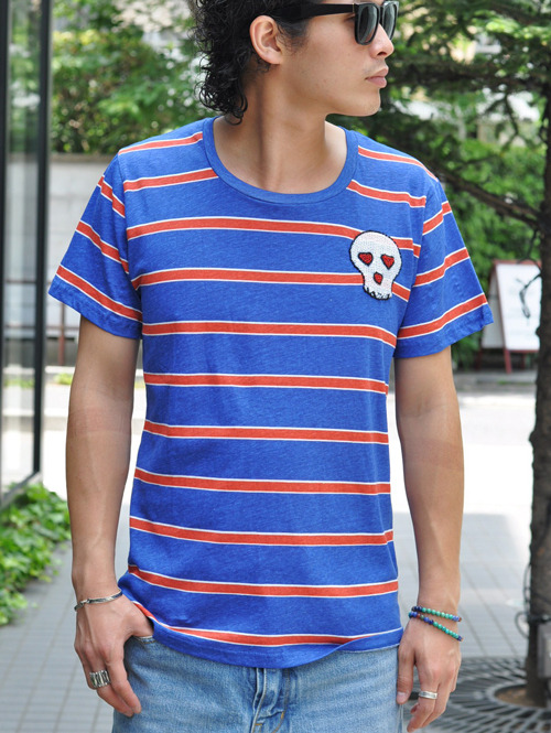 HM スカルワッペンボーダーTシャツ