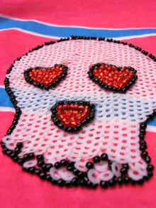 ビーズとスパンコールで出来たワッペンが付いています。