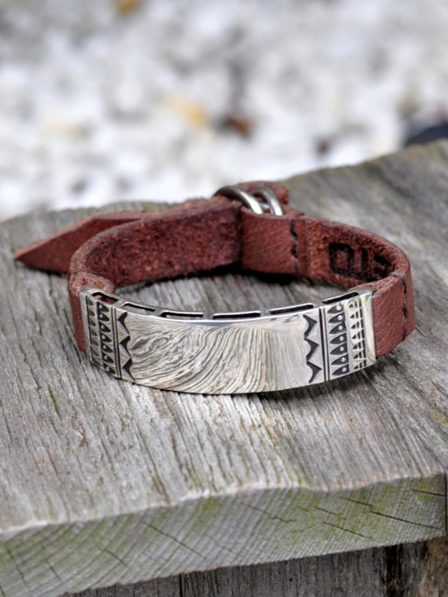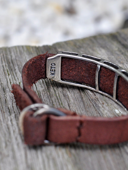 KETOのオリジナル刻印を施したシルバーにタンニン染めのバッファローレザーベルトを合わせたブレスレットです。
