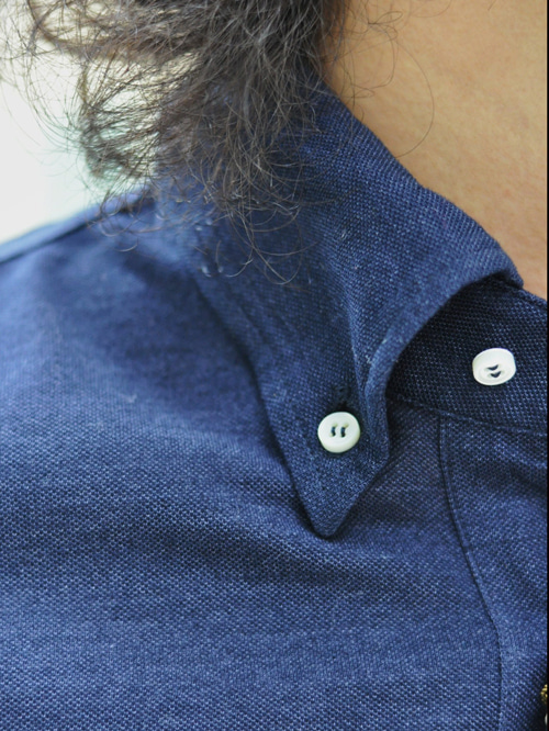 続いても国内ブランドANGLAISのインディゴ素材を使ったポロシャツ
