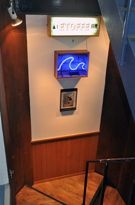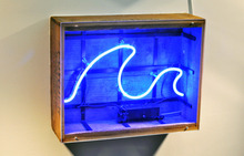 古い道具箱の中に波のネオンが入っています