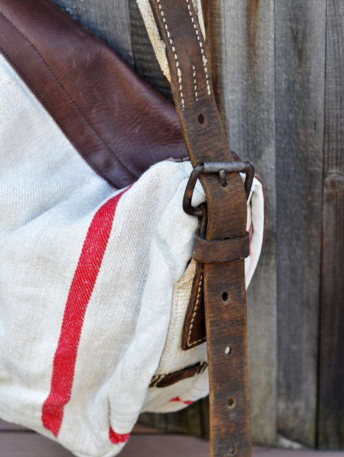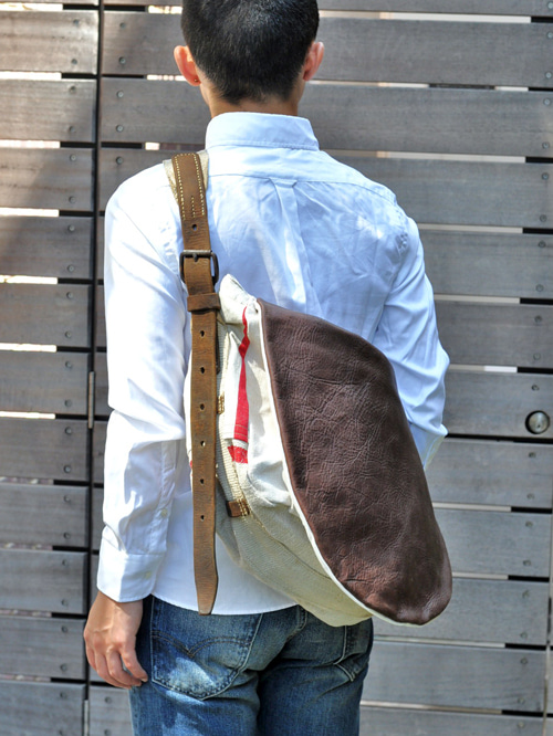 ヴィンテージのスイス軍の資材袋を使って作られています