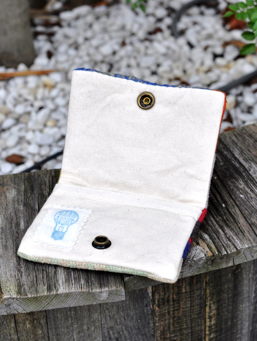 二つ折りで、カードと小銭、そして札が少し入るぐらいの大きさです。