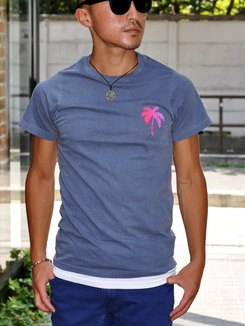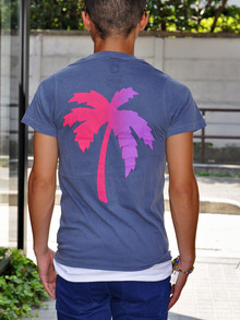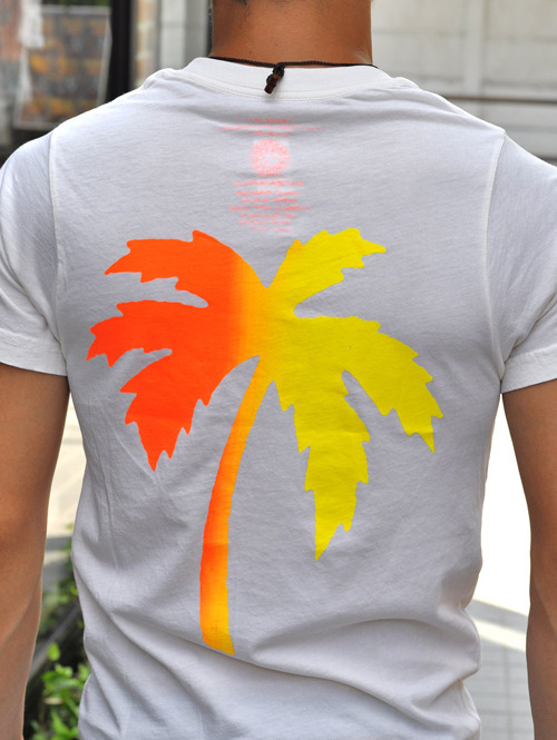 バックに大きなパームツリーがプリントされています。
