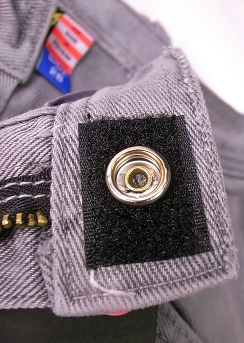 ボタンの部分にマジックテープを付け、ボードショーツの様なデザインにしてあり