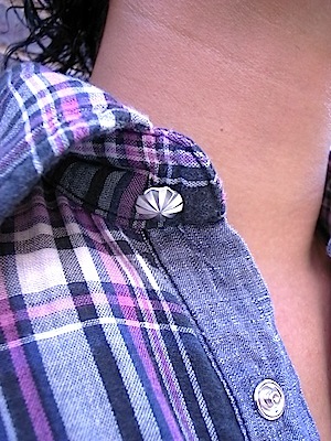 襟のボタンもコンチョになっています。