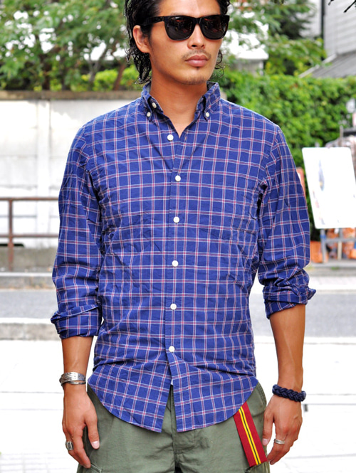 まずは、トラッドなタータンチェックのウォッシュドシャツ
