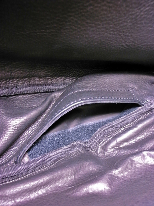 このストマックバックには、底をめくると、マジックテープ止めされたポケットが出てきます。