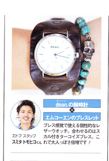 TOMOがDEANの時計と一緒に紹介されています。