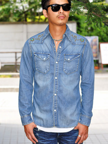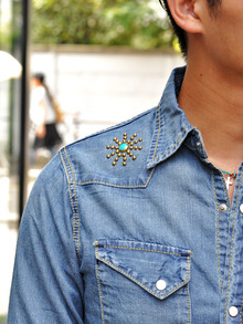 昨日の夕方オリジナルのスタッズデニムシャツが先行で何枚か入荷しました