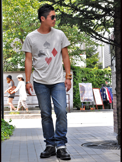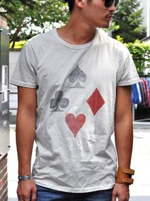 60年代のバイカーがお守りに使ったトランプ柄をプリントしたヴィンテージ加工のTシャツ