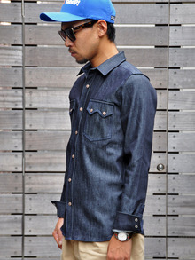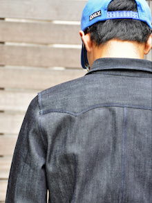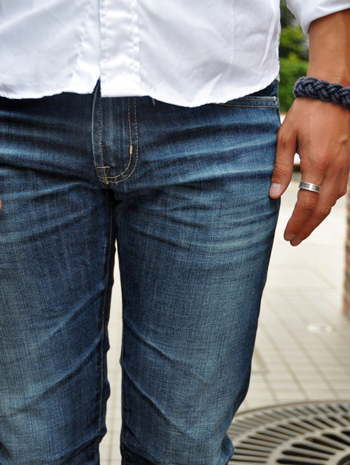 ノンウォッシュでステッチがネイビーなので、より男らしい雰囲気に仕上がっています。