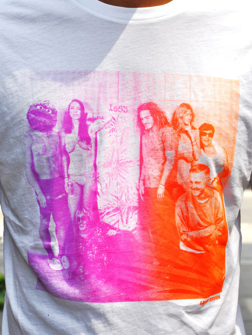 サーフセッションのフォトを蛍光のグラデーションでプリントしています。