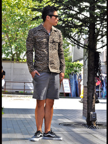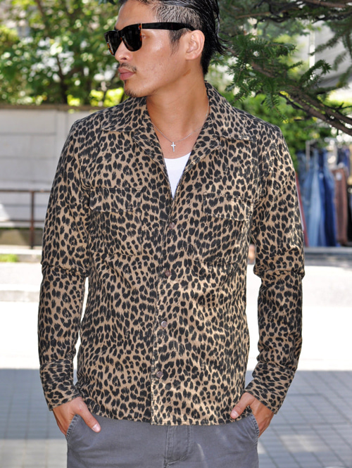 オープンカラーのタイトなレオパードシャツです。