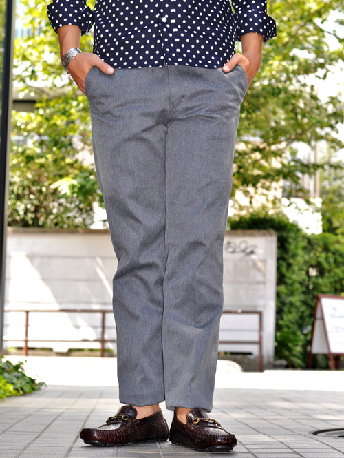 綺麗なシルエットになるようデザインされたパンツで、今なら短めに穿くと