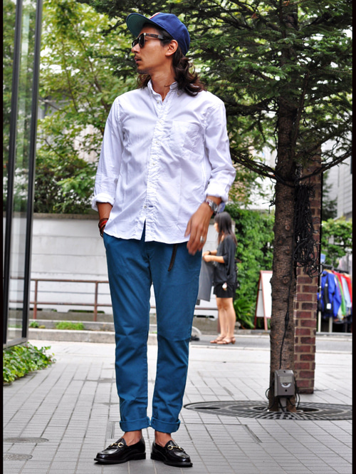 あまり見かけない色ですが、それがお洒落な海っぽいスタイリングに似合います