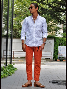 やはりこの秋はカラーパンツ合わせがお奨めです