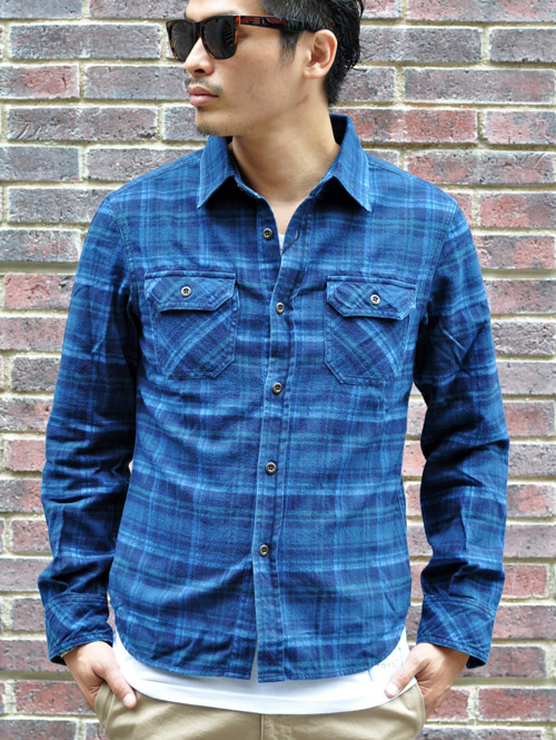 まず初めにSERGENTのインディゴ染めのチェックシャツから
