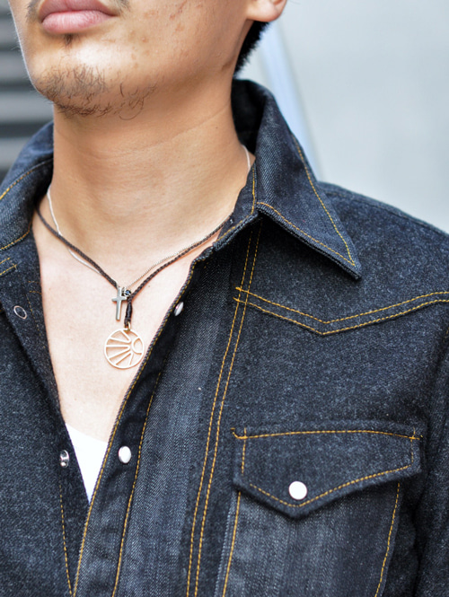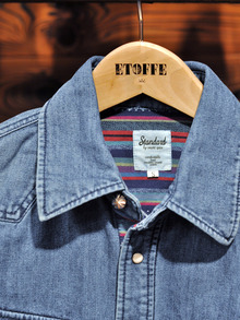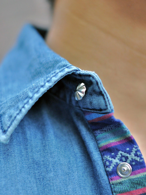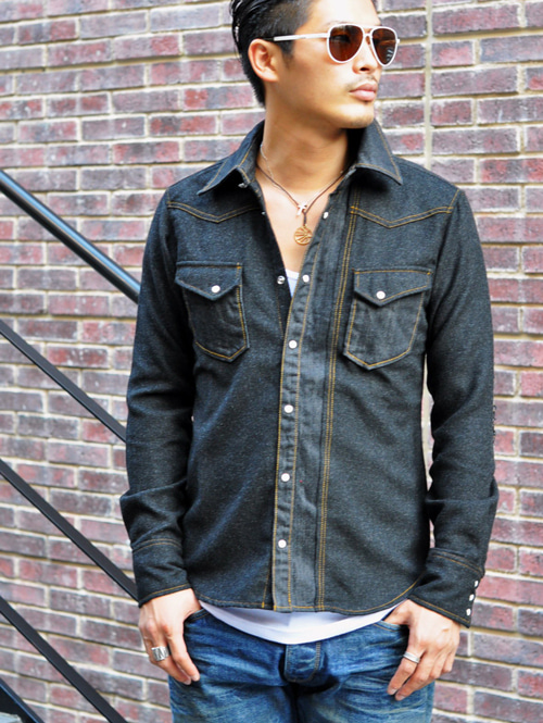 ウール素材とブラックデニムを使ったタイトなウエスタンシャツ
