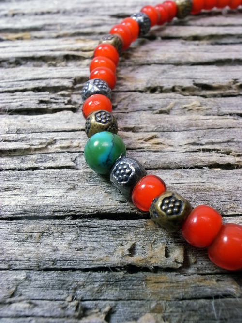 他にはシルバービーズ・ブラスのビーズ・そして真ん中にターコイズが入っています。