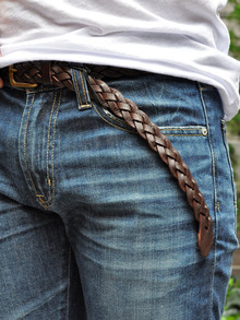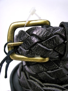 クラックの入ったレザーを使いハンドで編みあげました。