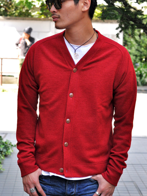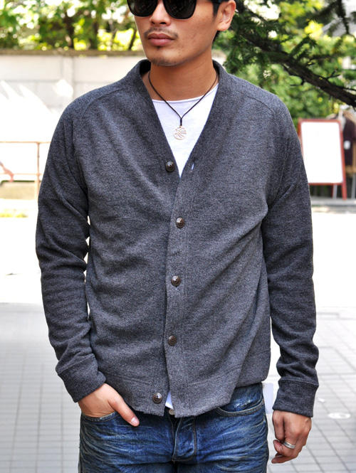 縮絨加工された、暖かニットカーディガンが入荷しています