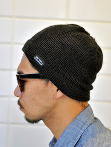 ニット帽が、注目されていますが、無地よりはこの辺の少しアダルトなタグの入った物が良いようです。