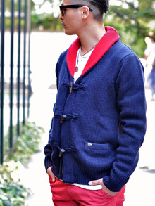 ショール部分が、ネービーとレッドの2色展開