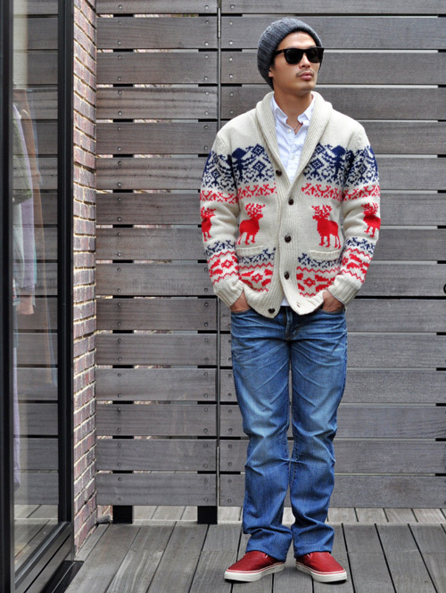 まず初めはエトフオリジナルのカウチン柄のショールカーディガン