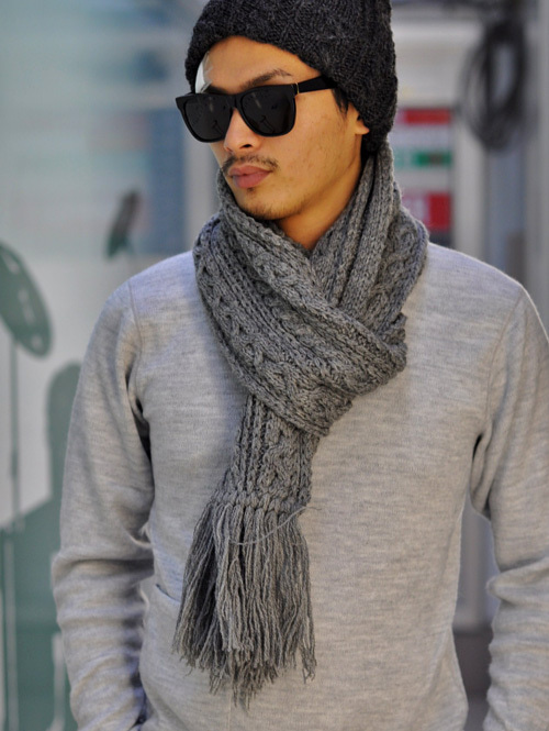 ニットキャップとお揃いの縄編みです。