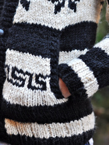 カウチンではあまり見かけないブラックのハンドスパンの糸を使い