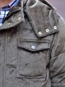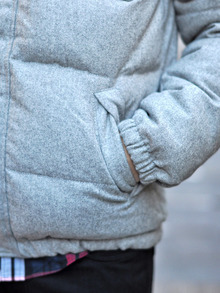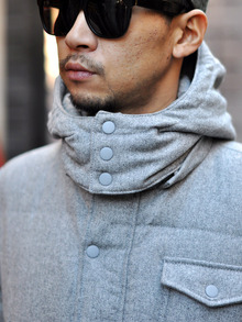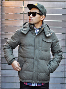ナイロンのダウンも良いですが、このような異素材もお洒落かと思います。