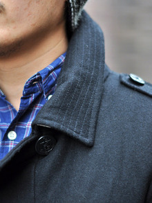 エポーレットが付いて、ボタンもトップまで締まるので