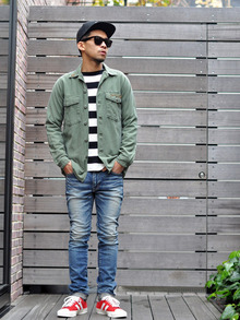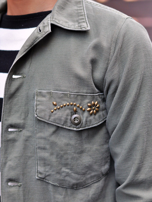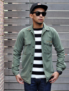 今日はまず、オリジナルのヴィンテージミリタリーシャツを使った