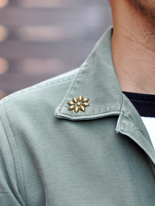 フラップと襟にHTC等も使っているスタンダード社のスタッズを手打ちで打ってもらいました。
