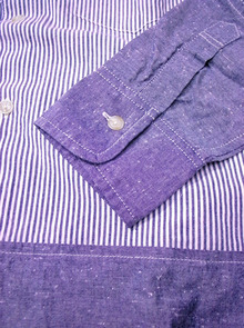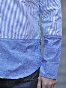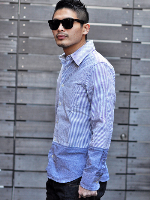 ストライプのオックスフォードとシャンブレ生地の切り返しで