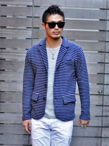 ボーダーのニットジャケット